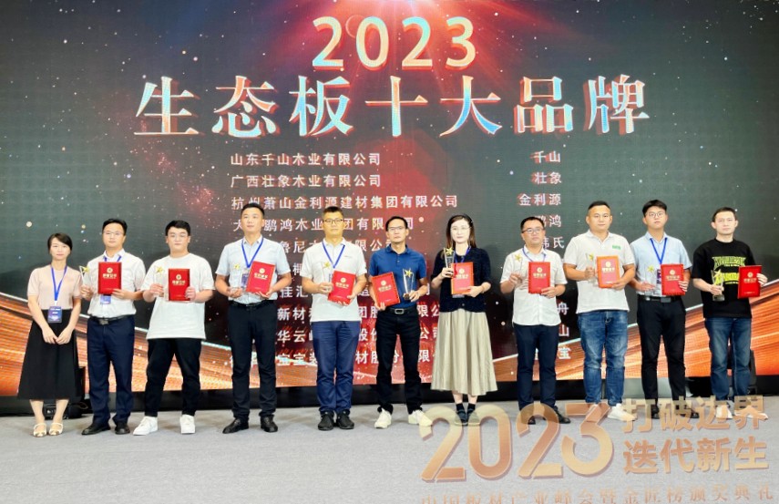 2023年7月1日,由中國木業網舉辦的2023中國板材產業峰會暨金匠榜頒獎典禮在杭州隆重舉行,行業專家、優秀獲獎企業齊聚盛宴,共同見證了生態板十大品牌、行業影響力十大品牌等各品類十大品牌的榮耀加冕。