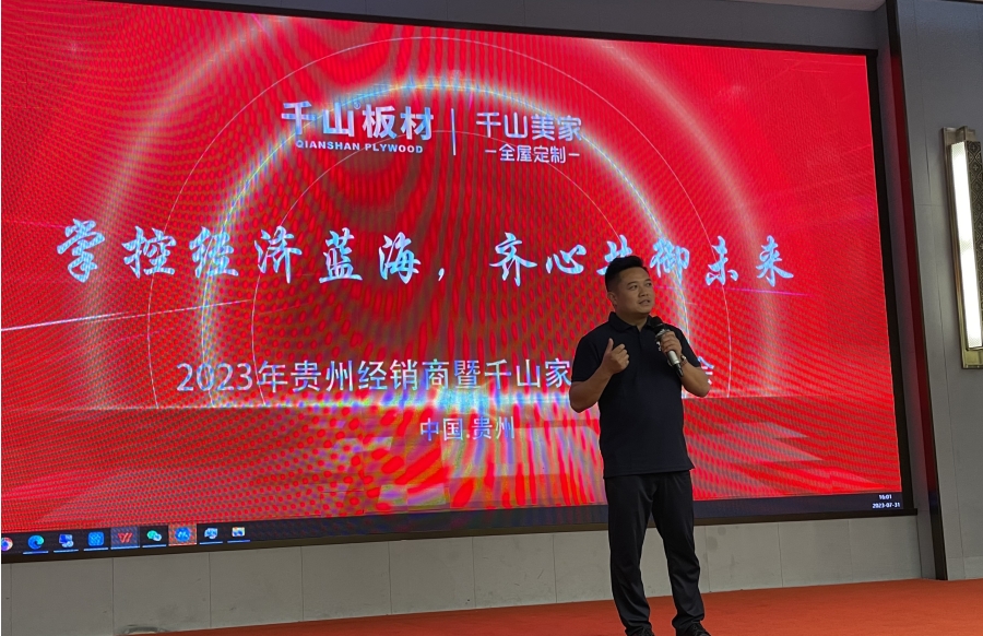 7月31日,千山2023年貴州經(jīng)銷商暨千山家具板招商會在貴陽隆重啟幕。本次大會以“掌控經(jīng)濟(jì)藍(lán)海 齊心共御未來”為主題,進(jìn)行產(chǎn)品培訓(xùn)、優(yōu)秀經(jīng)銷商頒獎、政策宣講等多項(xiàng)活動。100余名貴州經(jīng)銷商、家具廠大咖齊聚,聚焦家具板發(fā)展趨勢,共商合作。