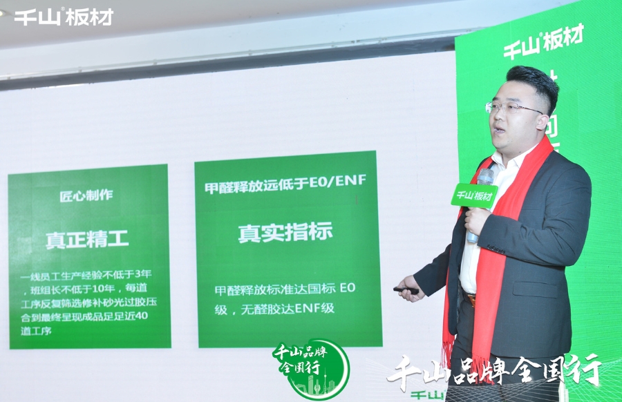 千山品牌事業(yè)部總經(jīng)理王松致辭。王總講到,正如全國(guó)行的主題“時(shí)尚領(lǐng)航 品質(zhì)筑家”,千山將在產(chǎn)品端持續(xù)發(fā)力,讓2.0品牌定位真正落地,通過(guò)產(chǎn)品和渠道的雙賦能,獲得市場(chǎng)高度認(rèn)可。