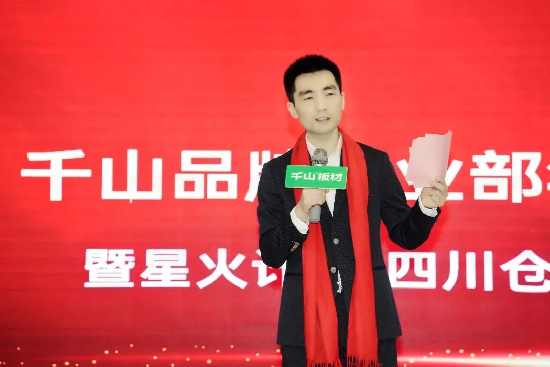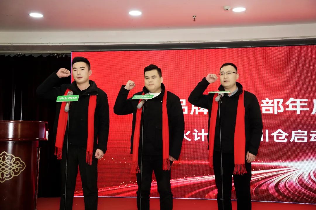 接著四川直營倉曹全震、滿彬、閆志玉進行宣誓?!耙陨碜鲃t,全力以赴,帶領團隊不斷突破自我,完成2024年公司既定目標!凱旋而歸!”戰(zhàn)旗在手、責任在肩、誓言聲聲,響徹會議大廳,這也意味著千山家具板又誕生了一支生力軍!
