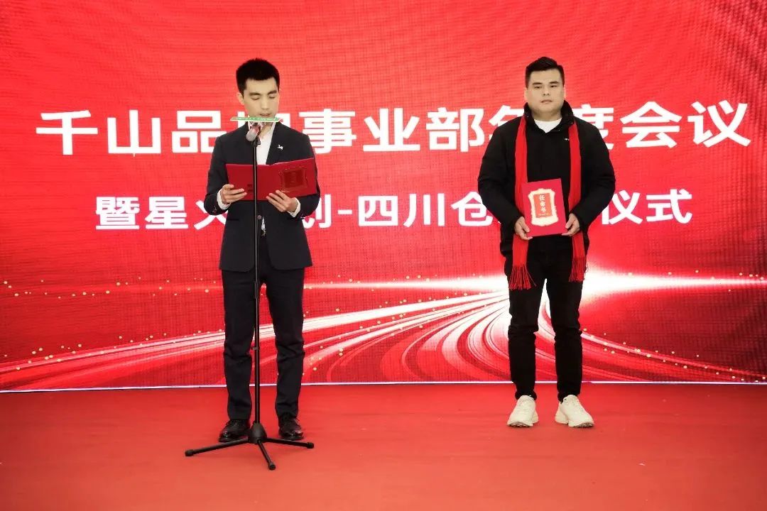 上午11點,直營倉啟動儀式正式開始,王總宣讀四川直營倉任命書:曹全震任千山品牌事業(yè)部四川直營倉總經理,滿彬、閆志玉任千山品牌事業(yè)部四川直營倉大區(qū)經理。