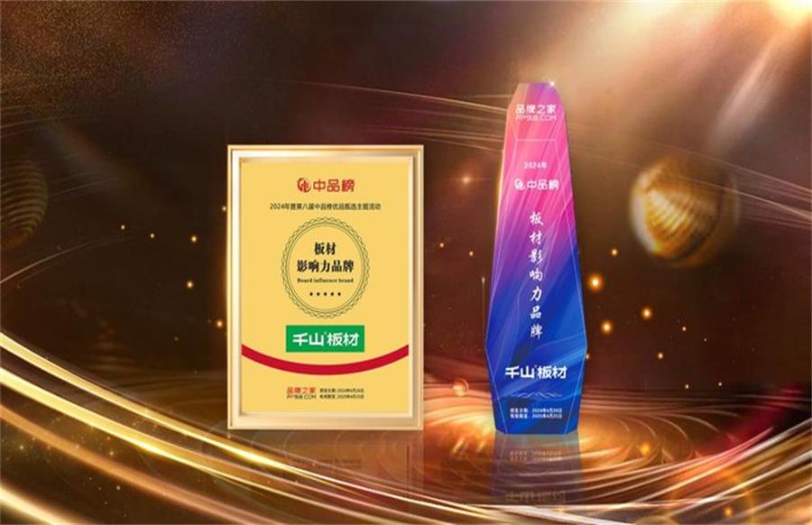 2024年4月,備受矚目的行業盛會——第八屆“中品榜”優品甄選活動圓滿落幕。在此次評選中,千山板材實力登榜,憑借卓越品質和品牌增長力,一舉拿下“板材十大品牌”、“家具板十大品牌”和“阻燃板十大品牌”三項大獎