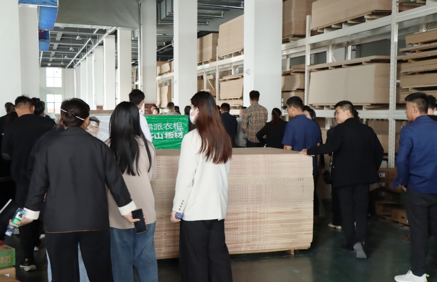 隨后,大家來到高標準倉儲成品庫參觀。千山板材倉儲成品庫配備了專業(yè)的管理人員,內部整潔、寬敞有序,每一處都體現了千山對于產品儲存、管理的嚴格標準與精細要求。