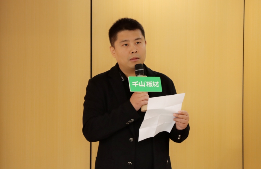 千山品牌事業(yè)部總經理王松發(fā)表講話,王總對各位伙伴的到來表示歡迎。王總分享到,全屋定制工廠和家具廠一直是千山關注的重點,千山家具板現貨倉的快速布局順應了全屋定制訂單制和板材倉儲式的必然趨勢。山東倉和四川倉的成功啟動是全國現貨倉戰(zhàn)略布局的良好開端,相信現貨倉一定會助力定制工廠的伙伴們實現更快發(fā)展。