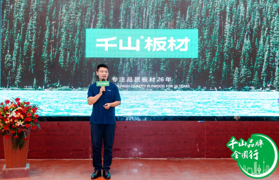 作為本次活動的產品推薦官,區域經理單記偉向大家詳細闡述了千山板材產品矩陣。爆品4大品類涵蓋實木刨片板(大/?。?、實木多層板、實木板(香杉木);127款潮流花色包括木紋32、純色41、高定10、數碼24、布紋石紋8、門板12,充分滿足不同風格的色彩需求。