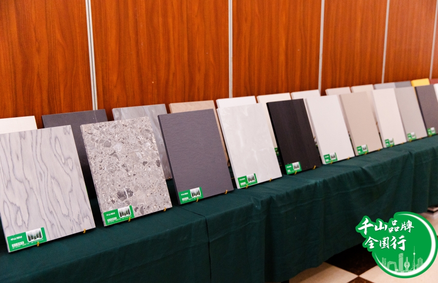 下午4點,伙伴們陸續到達活動現場,大家紛紛在千山板材風采展示墻留下自己的名字并合影留念,記錄美好時刻。隨后,伙伴們來到樣品展示區,仔細參觀千山板材2024年系列產品。