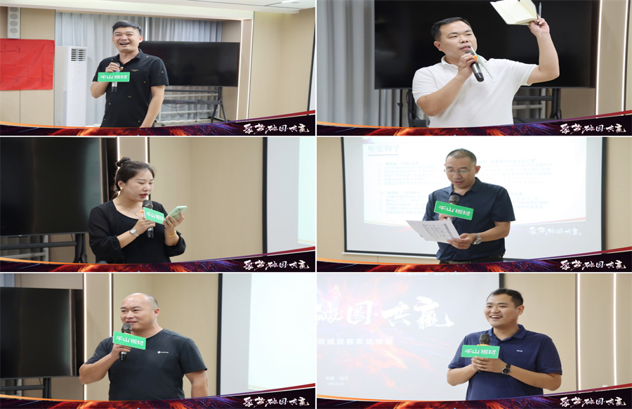 打好流量牌 把握線上渠道 將同城獲客作為重要抓手打造IP 在開營致辭中,千山板材山東倉總經理楊秀山首先對來到總部學習的伙伴們表示熱烈歡迎!楊總分享到,面對劣幣驅逐良幣的激烈競爭環境,破局向上、流量打造勢在必行。如今是短視頻和直播時代,大家要提高自身專業度,布局線上渠道,驅動增長。也希望家人們把握學習好時機,滿載而歸。