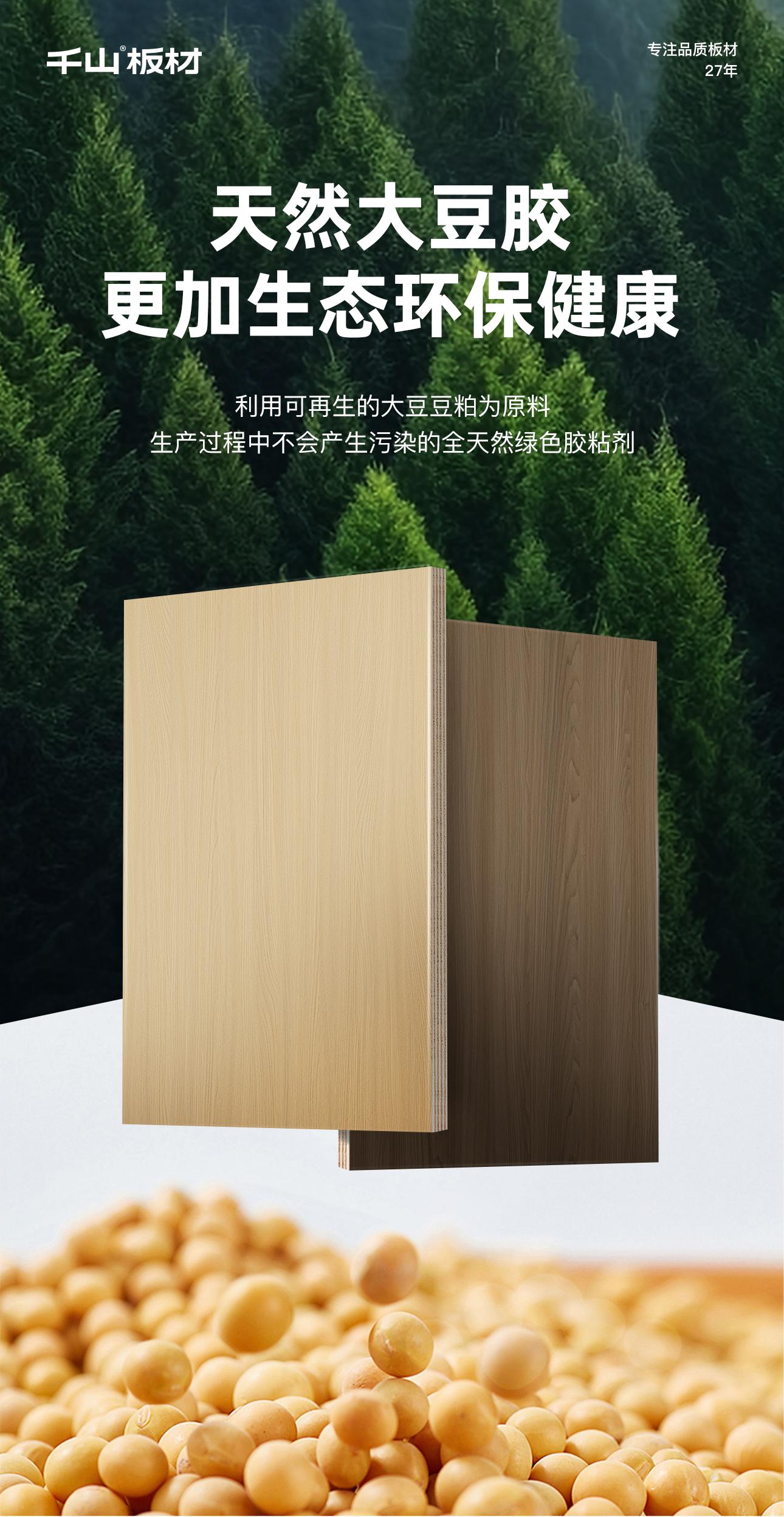 2019年成功上市以來,千山大豆膠板材以無醛大豆膠黏劑技術、優質實木板芯以及無醛添加制造工藝,在無醛人造板市場脫穎而出。憑借卓越的產品品質與環保性能,連續六年暢銷,成為消費者信賴的明星產品。