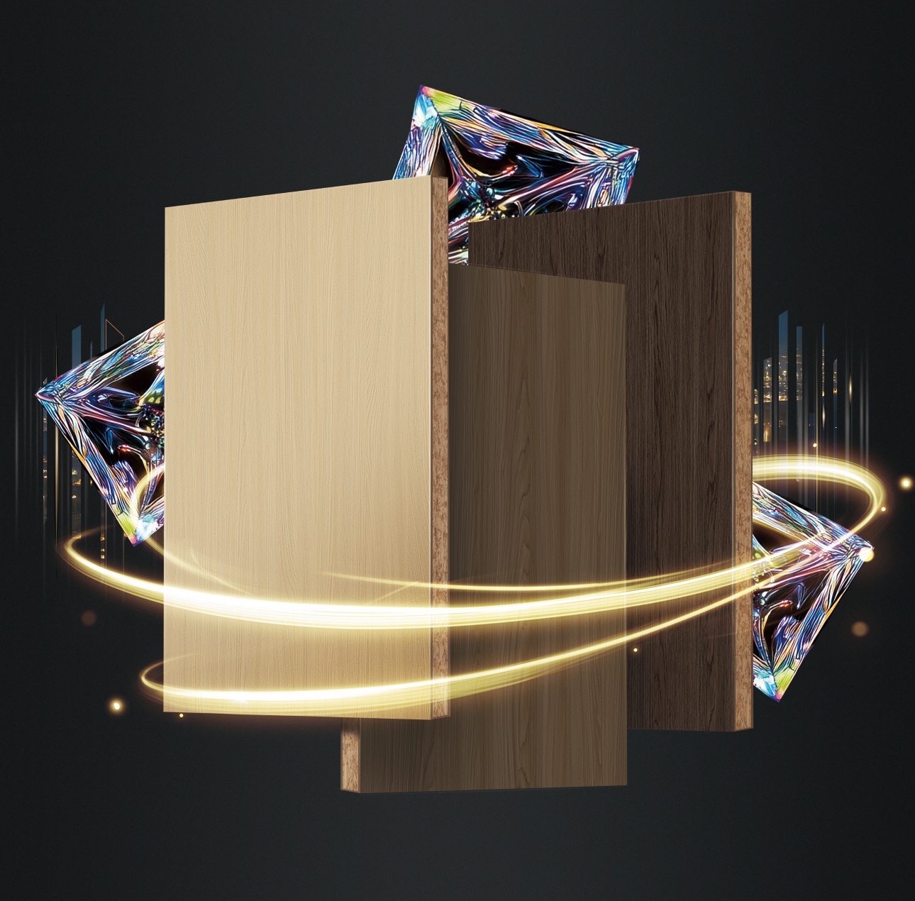 離子晶體層的高強度高硬度特性,增強板材垂直承載極限,在承受外力作用時依然保持結構穩定性,承重力提升50%,滿足大空間儲物需求。抗變形力提升50% 有效降低形變風險,讓一門到頂柜門不用加裝拉直器!