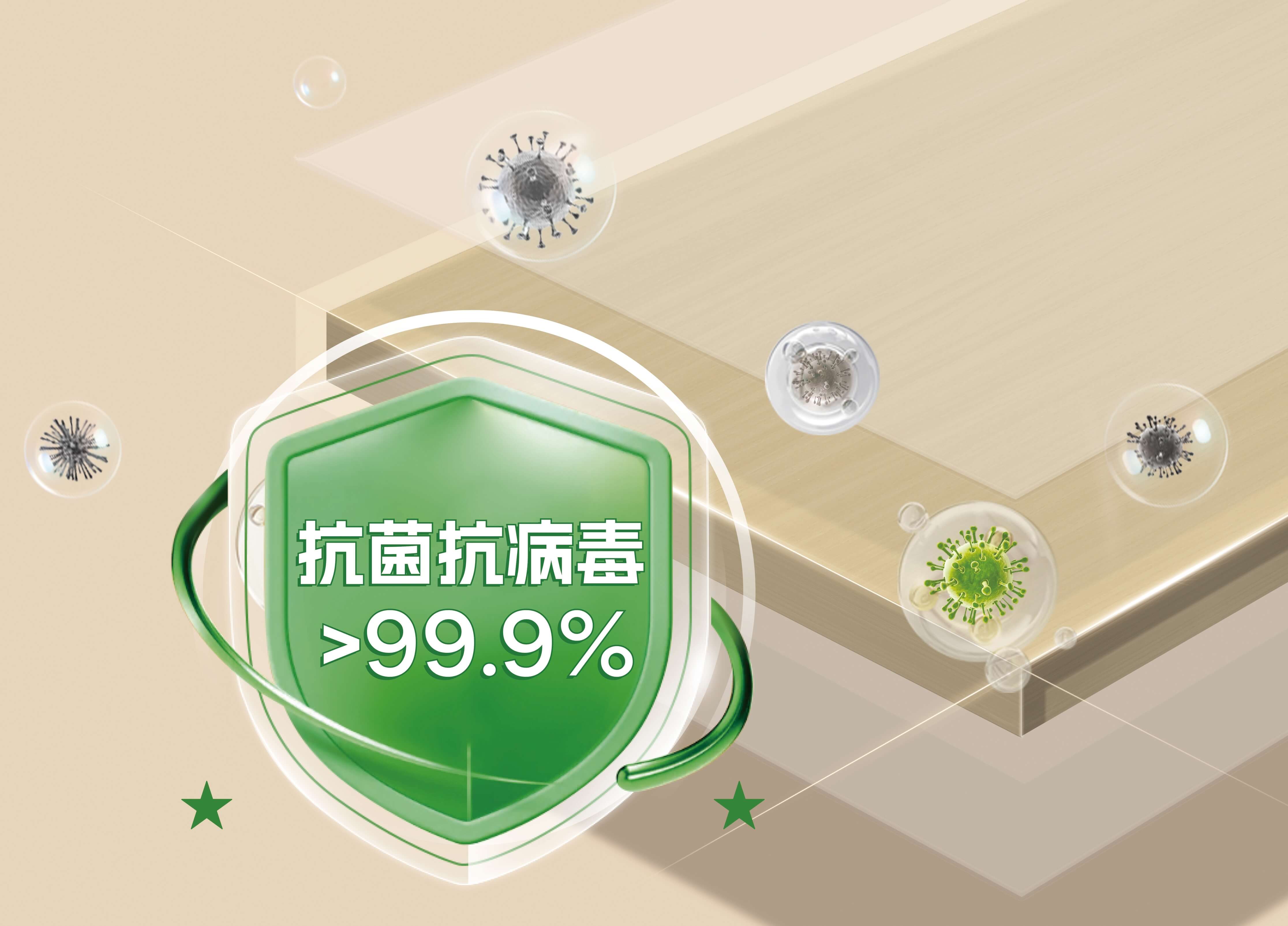 經權威機構檢測,凈醛板對大腸桿菌(AS1.90)和金黃色葡萄球菌(AS1.89)的抗(細)菌率分別為99.92%和99.99%。對甲型流感病毒H1N1的抗病毒活性率為>99.9%。