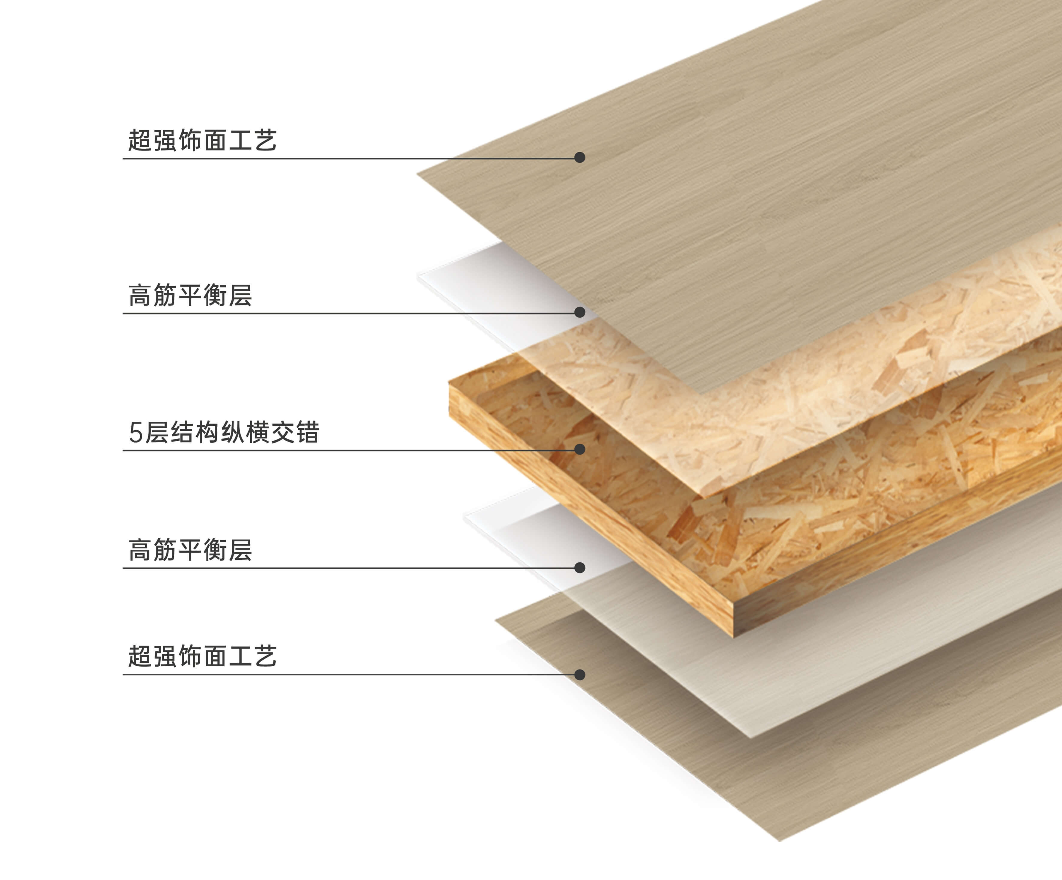 千山全能板(實木大刨片)采用德國進口迪芬巴赫連續平壓線生產,均質刨片定向鋪裝,縱橫交錯排列,5層結構精細緊密,成就穩定抗變性能。