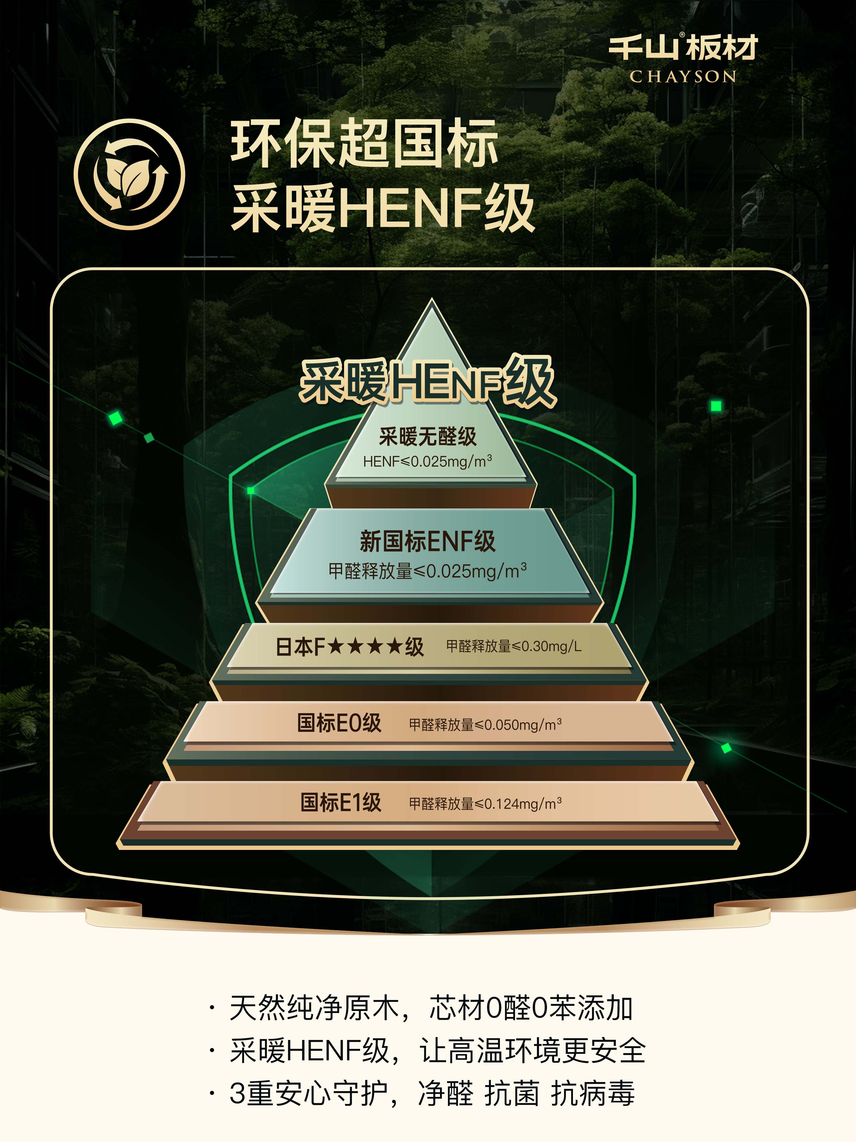 千山原木板質地天然,綠色00苯添加,環保達采暖HENF級,融入凈醛、抗菌、抗病毒功能工藝,讓家不止于美觀,更是一方安心健康的守護。
