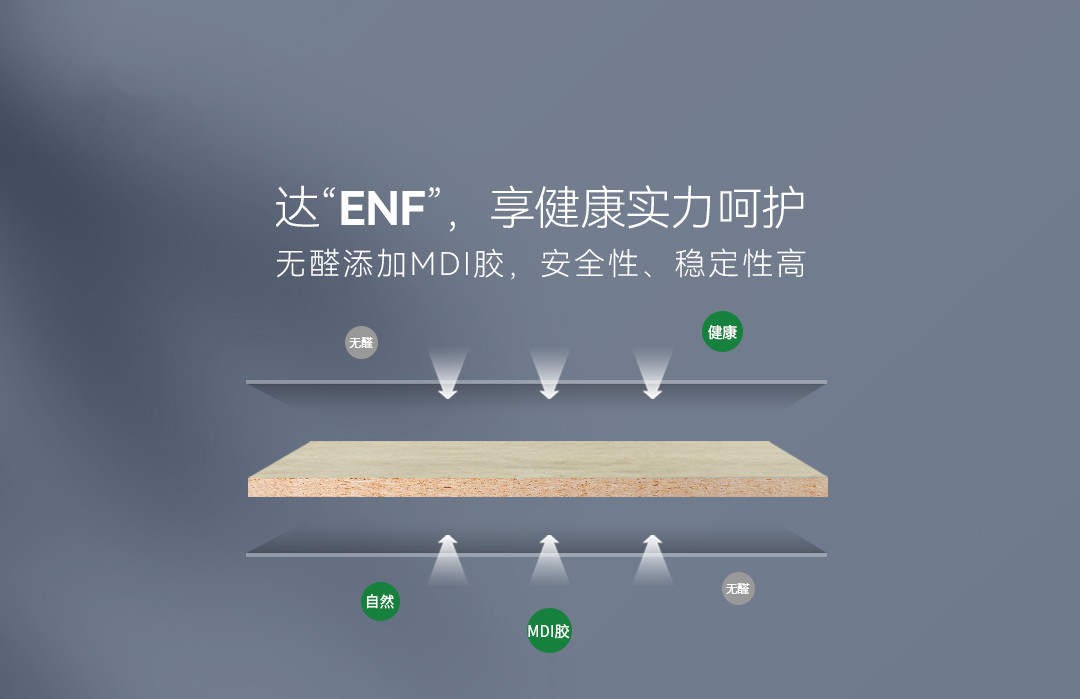 超芯板無醛添加MDI膠,安全性、穩定性高,防水性能更佳,板材環保等級可達ENF級,呵護綠色健康家居生活。
