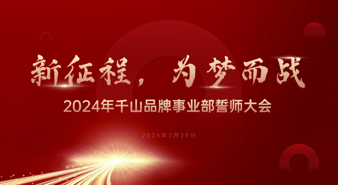2月29日,“新征程 為夢而戰”,2024千山品牌事業部誓師大會高燃啟動。集團各事業部總經理與全體營銷精英集結一堂,以飽滿的精神,點燃營銷團隊的熱血與激情,吹響全面決勝的集結號!01 軍令如山 使命必達大捷之勢,縱馬由韁。經銷商與山東倉兩個精英團隊依次上臺,領取并簽署目標軍令狀,
