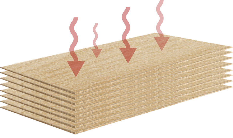 層層夾芯經(jīng)過阻燃劑的高壓浸泡長達(dá)4小時(shí),保證木纖維的完全滲透
